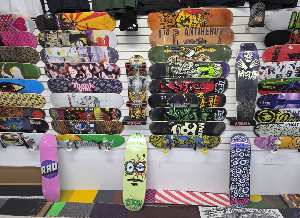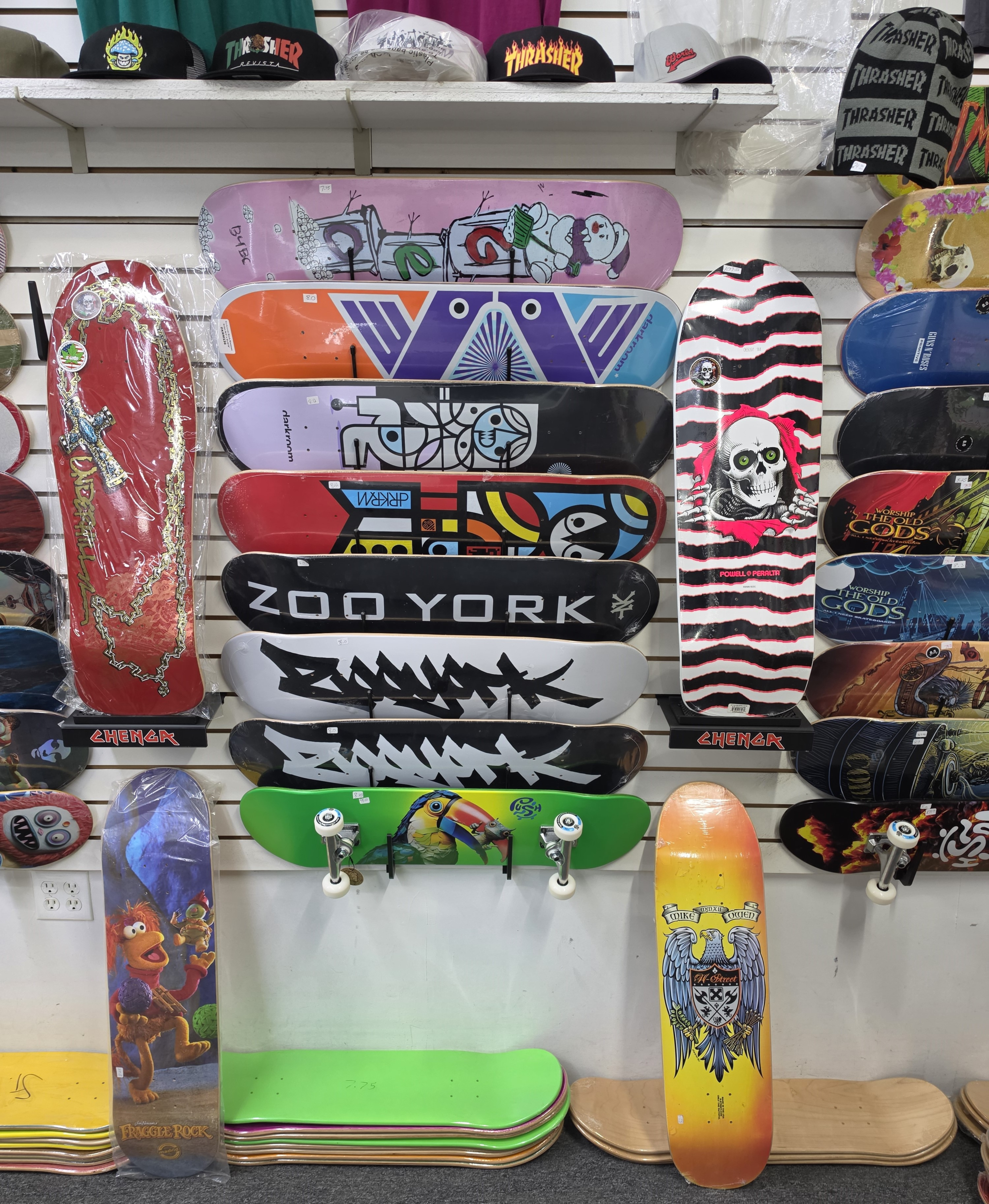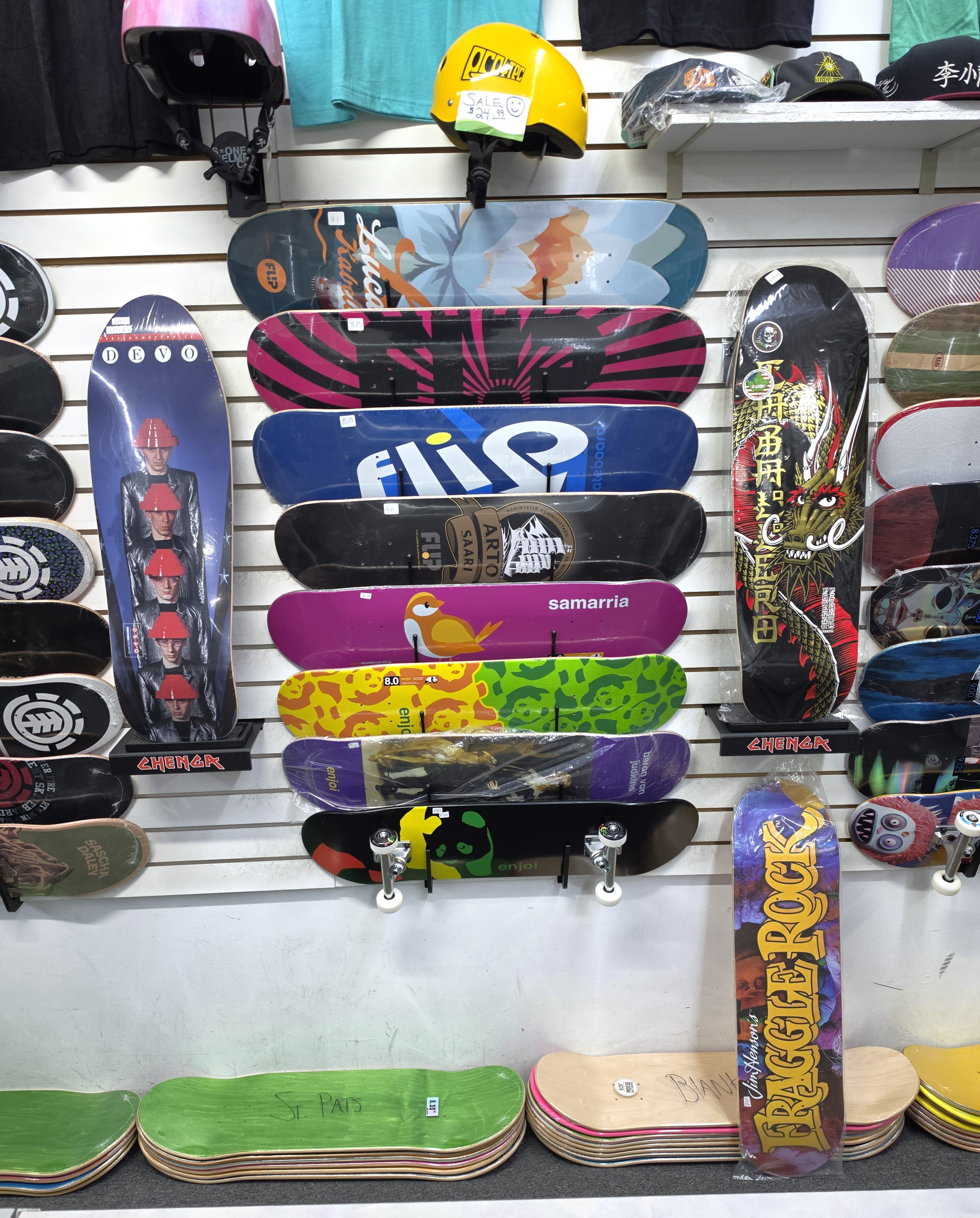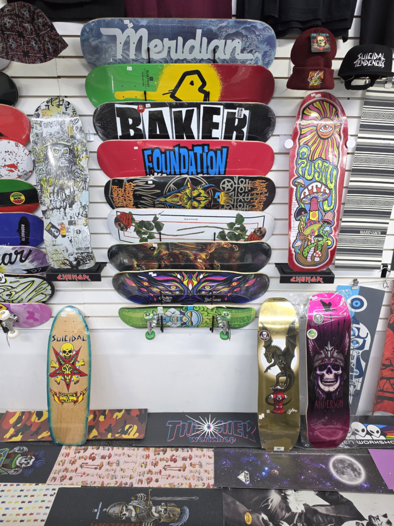 We have been working hard to update and expand our Skateboard portion of the pro shop! With over 125 decks in stock and so much to mention that we thought pictures would do more than we can say…. 🙂