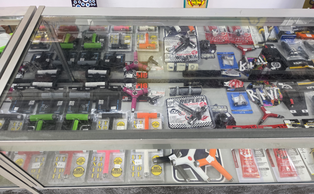 Skate tools on the left, shoe Goo center, and other great tools on the right.