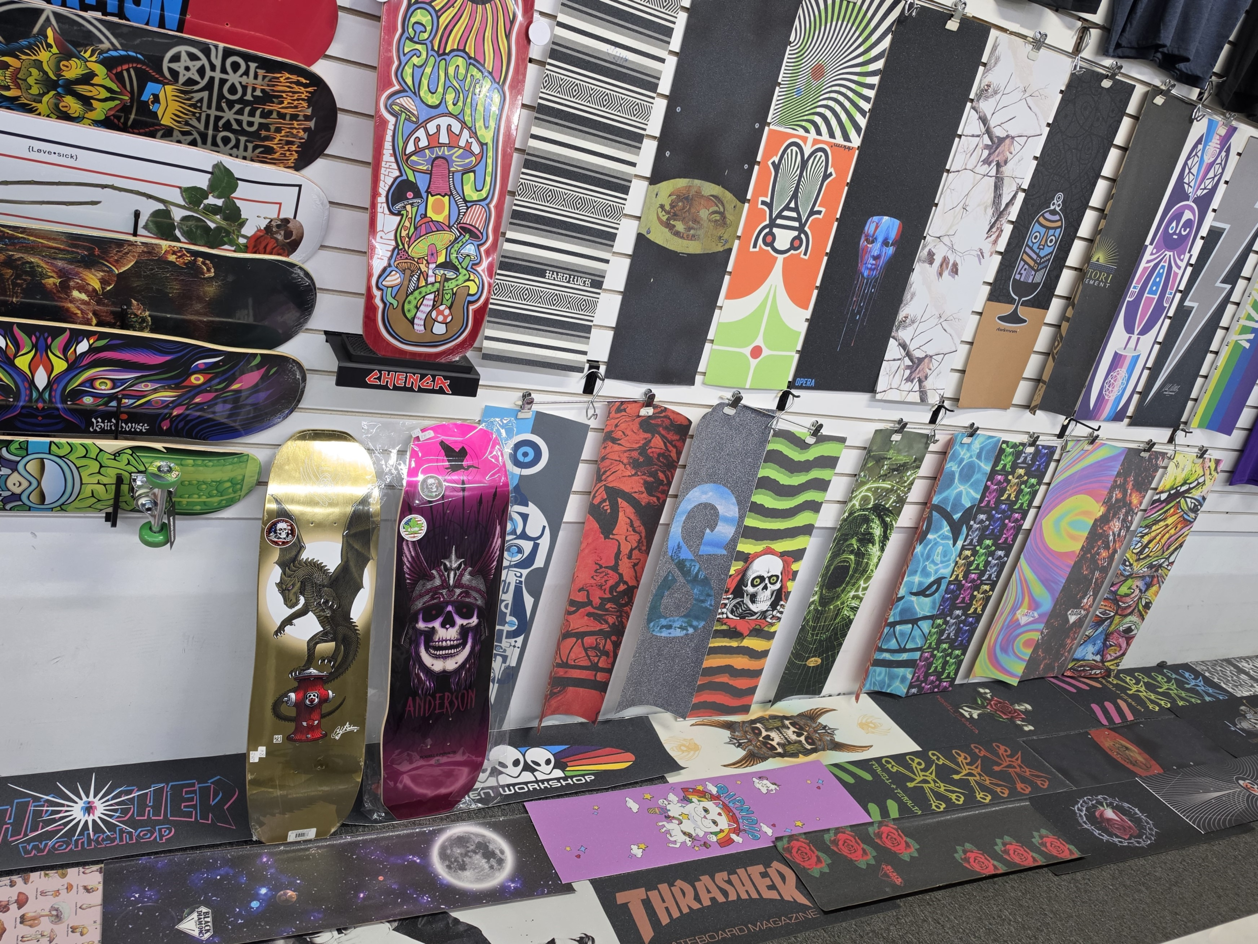 Popsicle decks, Cruiser decks, and graphic grip tape below.